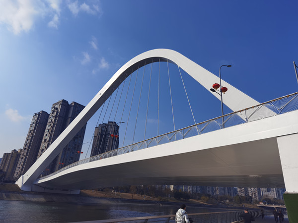 錦言大橋位于四川成都市金融總部商務(wù)區(qū),“成都金融總部商務(wù)區(qū)” 是四川省乃至我國西部地區(qū)金融業(yè)發(fā)展和金融機(jī)構(gòu)聚集的核心承載區(qū)。錦言大橋是成都金融總部商務(wù)區(qū)中連通錦江兩岸,連接高新區(qū)、錦江區(qū)兩個(gè)區(qū)域的重要橋梁。錦言大橋橋下錦江為VI級航道,主梁單跨138米,橋?qū)?0米,主拱跨徑135米,結(jié)構(gòu)為空間異形鋼拱橋,橋梁總面積約為4140平方米。