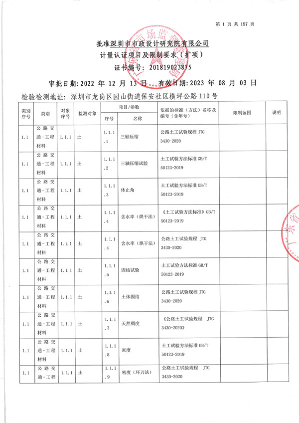 2022年11月,廣東省質(zhì)量監(jiān)督局委派6名專(zhuān)家來(lái)公司檢測(cè)試驗(yàn)中心開(kāi)展為期2天的現(xiàn)場(chǎng)評(píng)審。在資料審核和現(xiàn)場(chǎng)實(shí)操考核結(jié)束后,評(píng)審專(zhuān)家一致認(rèn)為場(chǎng)地、設(shè)備設(shè)施、人員及管理體系等符合評(píng)審要求,準(zhǔn)予通過(guò)現(xiàn)場(chǎng)評(píng)審。經(jīng)過(guò)為期30多天的審批,廣東省質(zhì)量監(jiān)督局于12月19日向公司發(fā)放擴(kuò)項(xiàng)證書(shū)。至此,公司檢測(cè)能力由原來(lái)的594項(xiàng)達(dá)到了44個(gè)專(zhuān)業(yè)1451項(xiàng),參數(shù)覆蓋了目前鐵投城際鐵路項(xiàng)目所需參數(shù)的90%。