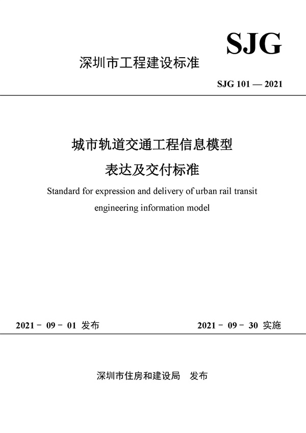 9月1日,深圳市政院與深鐵建設(shè)牽頭編制的《城市軌道交通工程信息模型表達(dá)及交付標(biāo)準(zhǔn)》(SJG 101-2021)、《城市軌道交通工程信息模型分類和編碼標(biāo)準(zhǔn)》(SJG 102-2021)兩本地方標(biāo)準(zhǔn)正式發(fā)布,自2021年9月30日起生效實(shí)施。