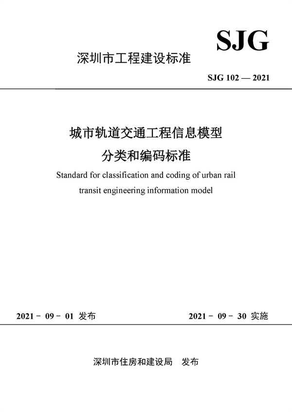 SJG 102-2021 《城市軌道交通工程信息模型分類和編碼標(biāo)準(zhǔn)》封面