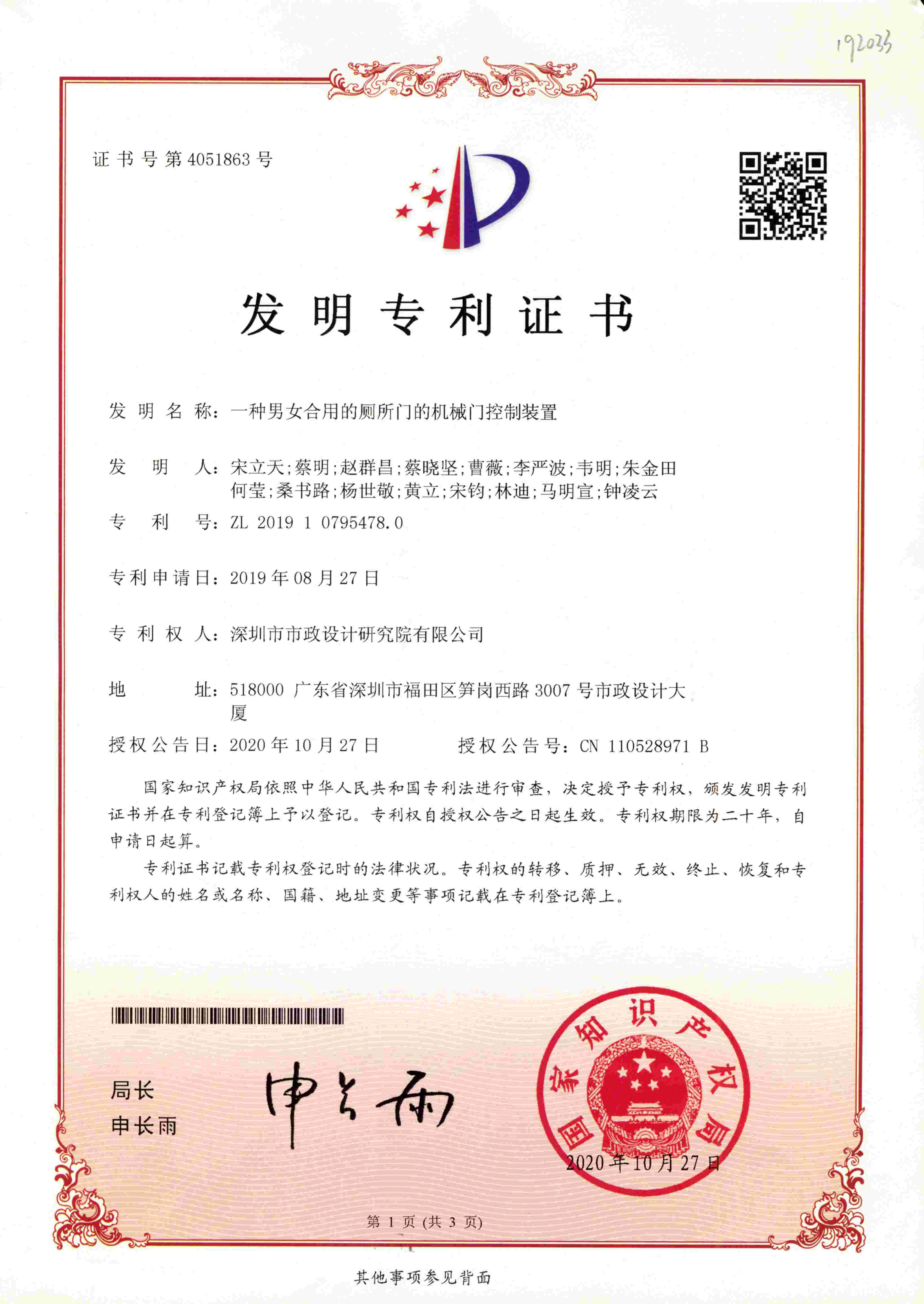 一種男女合用的廁所門的機(jī)械門控制裝置